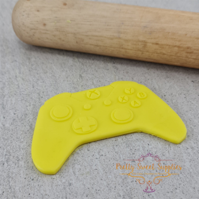 Debosser is designed to stamp on fondant to create realistic raised buttons. Using a matching cutter you will then be able to cut out the shape of the game controller before sticking to the baked cookie.